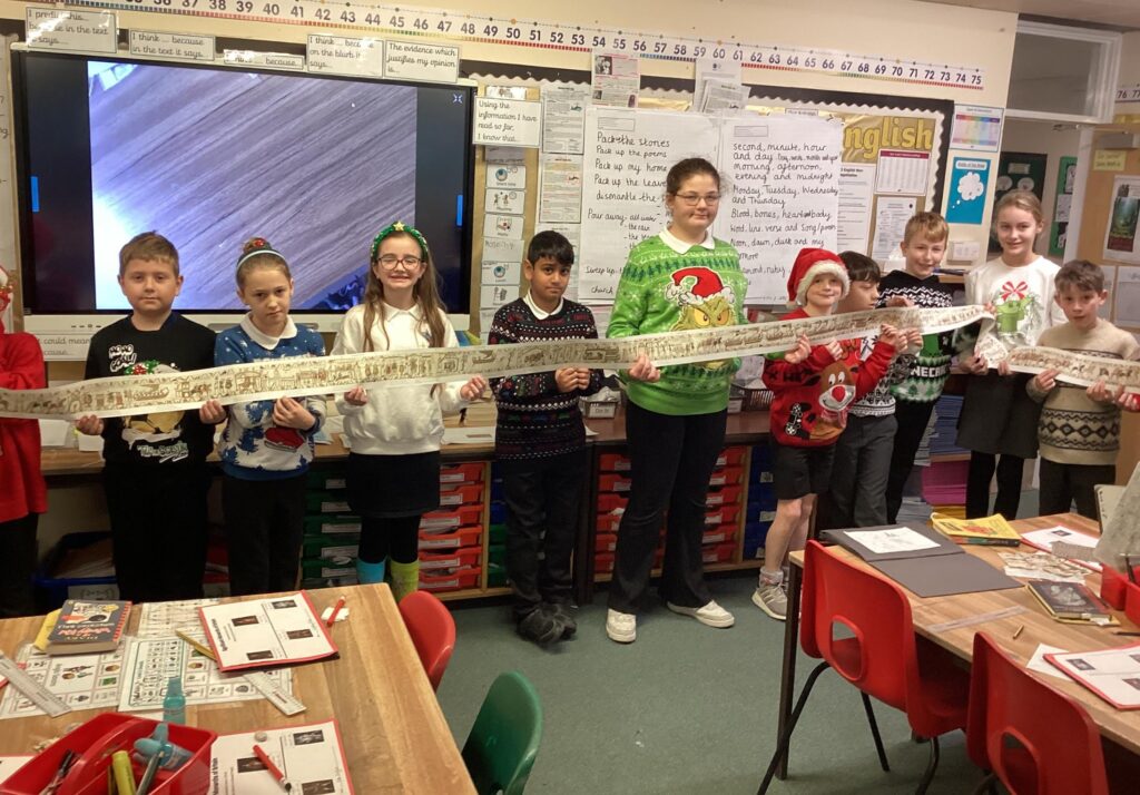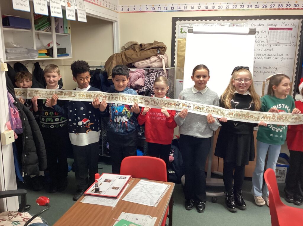 Mr Ryder very kindly bought in his copy of the Bayeux Tapestry for us to look at the story of the events leading up to and The Battle of Hastings.